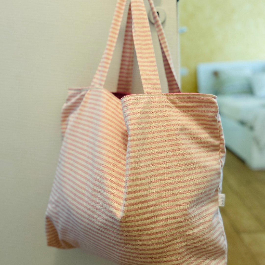 Realizzata a mano con tessuti morbidi ma resistenti, è perfetta per la spesa, il mare o una passeggiata in città.