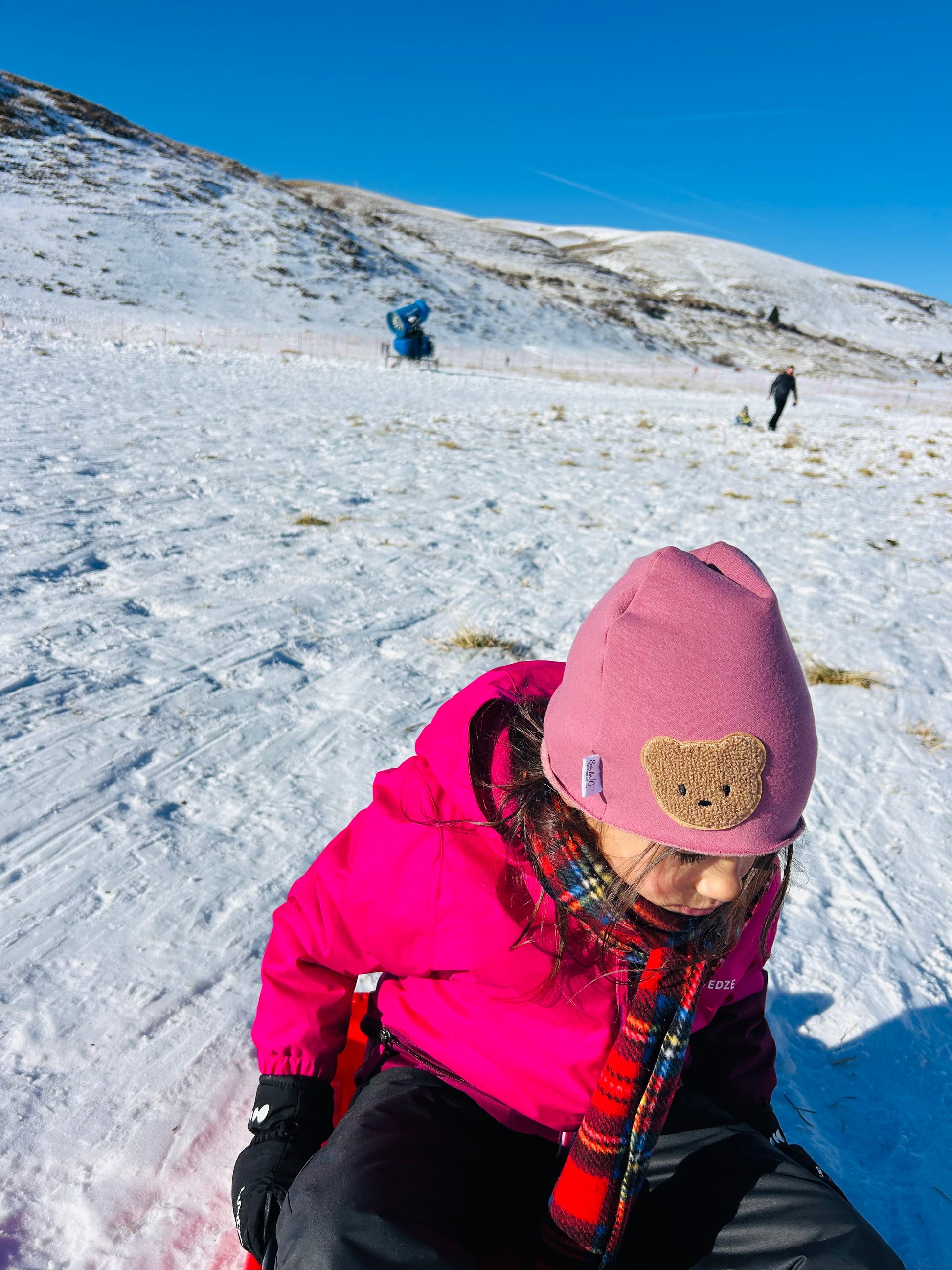 La felpa è un tessuto caldo e soffice, ideale per mantenere la testa al caldo senza stringere né irritare la pelle delicata dei bambini. L’applicazione dell’orsetto, cucita con attenzione ai dettagli, rende il cappellino unico e irresistibile, aggiungendo un tocco giocoso e originale.