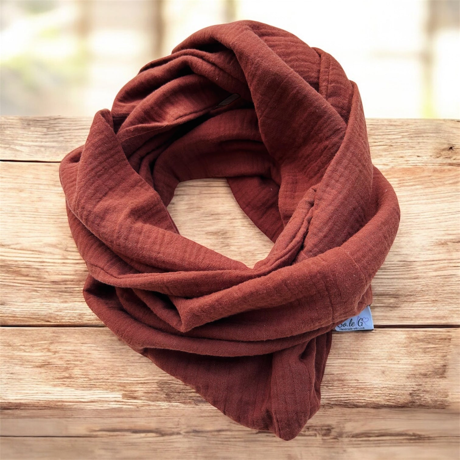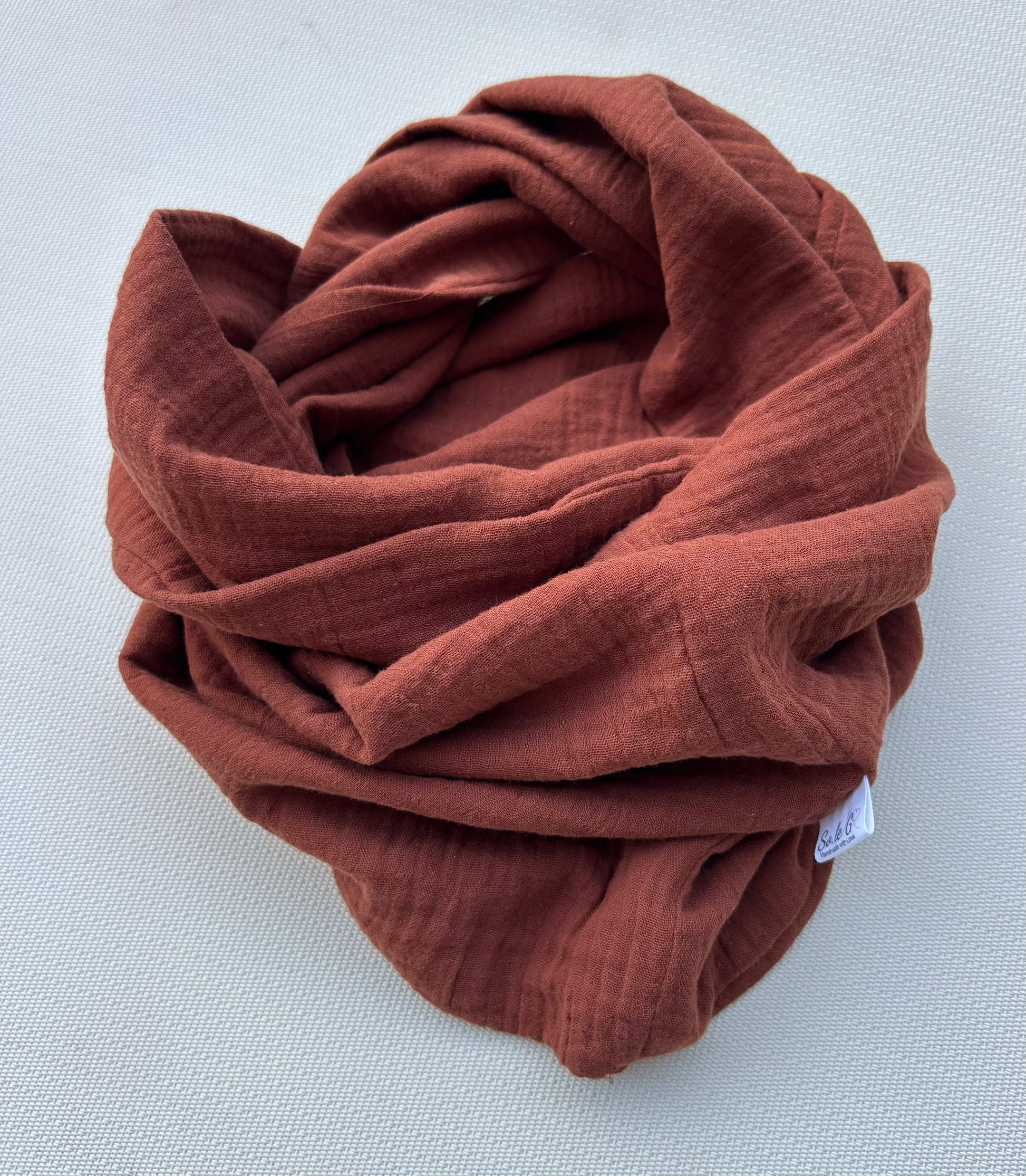Lasciati avvolgere dalla morbidezza eterea della mussola con il mio scaldacollo fatto a mano, il complemento perfetto per le giornate autunnali. Questo capo esclusivo è pensato per le donne che amano la praticità senza rinunciare allo stile. Il design a doppio giro garantisce un calore confortevole e una vestibilità morbida, ideale per proteggersi dal fresco senza appesa